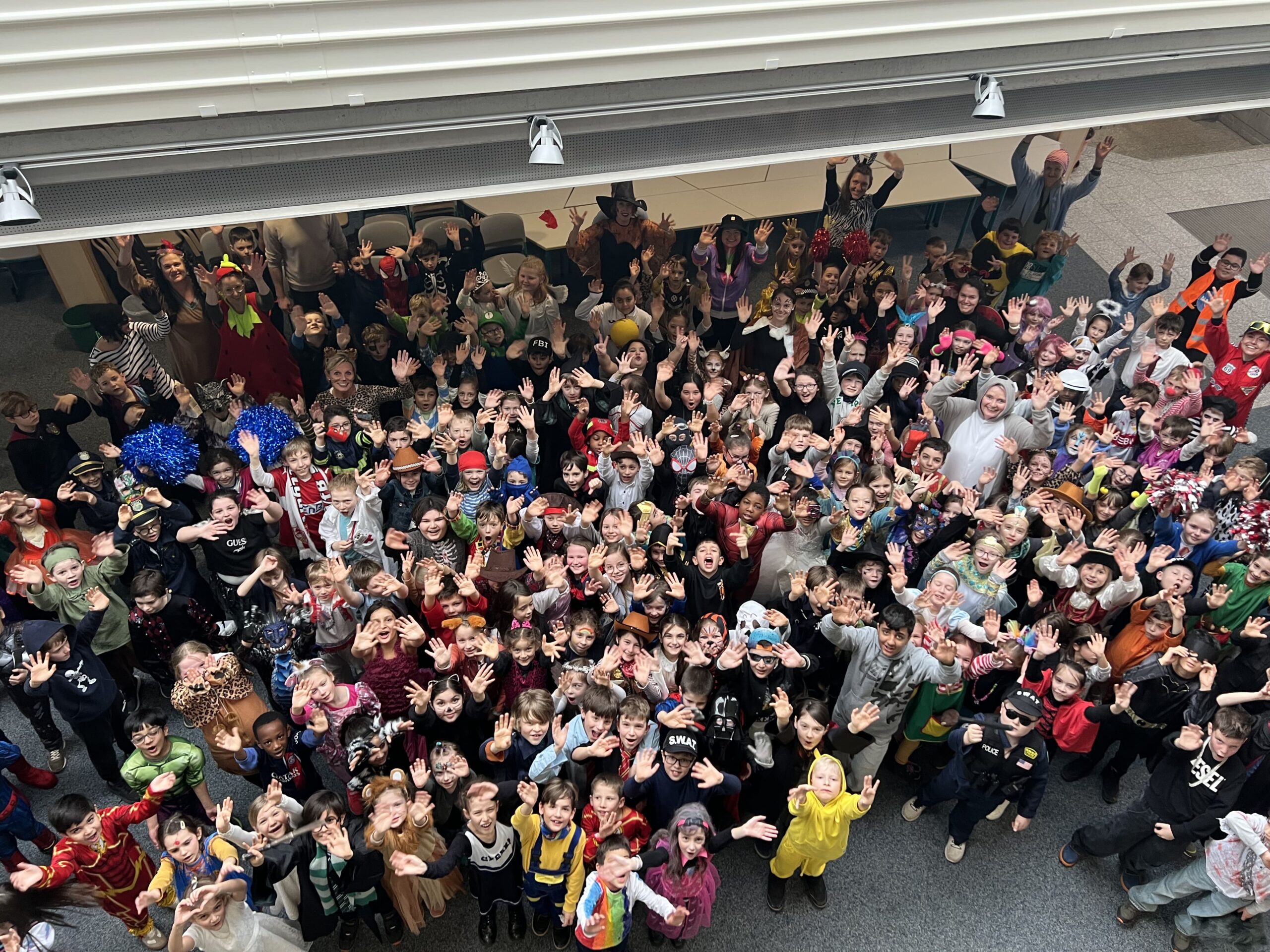 Am folgenden Tag, Fr., 13.02.2026 waren dann die Schülerinnen und Schüler der Grundschule zusammen mit Ihren Lehrerinnen an der Reihe. Nach gemeinsamen Aktionen in der Neuen Aula fand als Höhepunkt eine Polonaise durch das gesamte Schulhaus statt. Dabei wurden auch Lehrerzimmer, Sekretariat und Rektorat eingeschlossen und im langen Gänsemarsch ging es den Faschingsferien entgegen.
